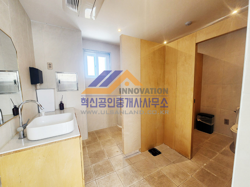 ▣ 울산 남구 삼산동 상가 임대 내부 남여분리 화장실 각 1개소, 테라스 남여공용 화장실 1개소