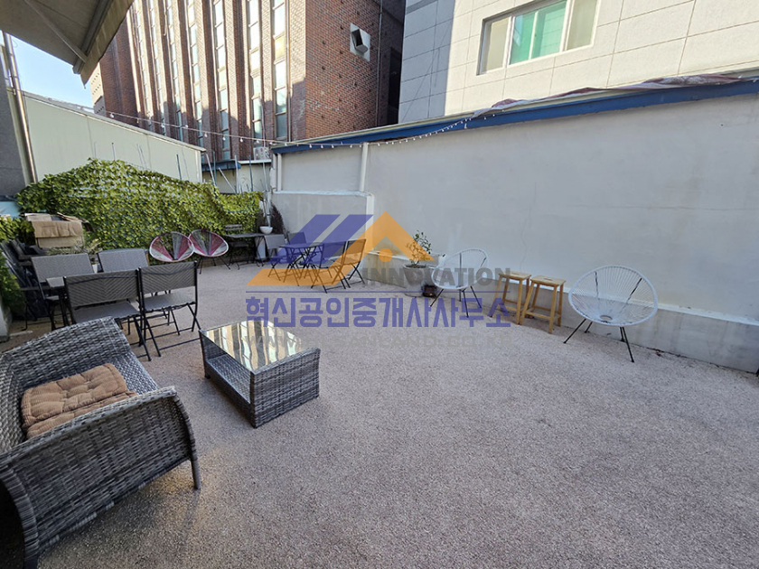 1층 테라스 구조를 갖춘 카페 임대 매물입니다.