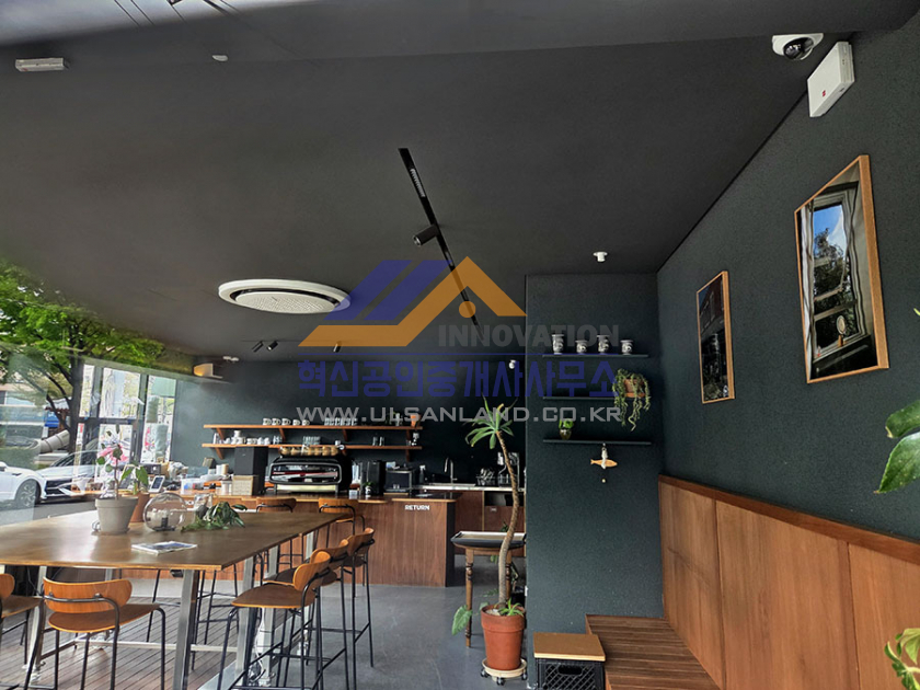 울산 삼산동 벚꽃공원 앞 사거리 코너 1층 카페 매물입니다.